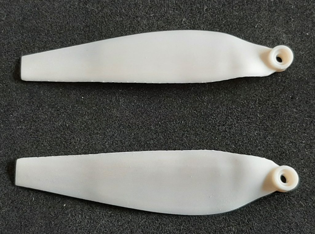 Tous les tests réalisés sur des hélices de forme toroidale pour le drone DJI Mini 3 Pro n’ont pas donnés de résultats satisfaisants sur le rendement. Par contre le niveau sonore lui a baissé. Le modèle d’hélice qui a donné le meilleurs rendement est une tripale au forme classique. La meilleur étant l’hélice d’origine qui affiche une autonomie de 30 minutes en moyenne alors que la tripale, offre 24 minutes. Ces hélices de test ont été réalisées en impression 3D résine. Cela présente deux inconvénients. La rugosité des couches même si elles sont très minces et les aspérités laissées par les supports. Pour savoir si ces « défauts » ont une incidence sur le rendement voici l’autopsie d’une hélice originale de DJI mini 3 Pro.